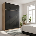 Ντουλάπα τετράφυλλη με πατάρι Lego Ι pakoworld sonoma-ανθρακί 160x42x240εκ