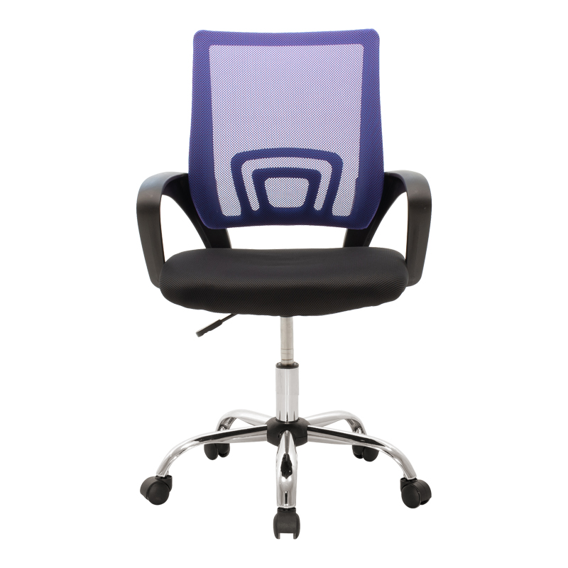 Καρέκλα γραφείου Berto II pakoworld με ανάκλιση ύφασμα mesh σε μπλε-μαύρη απόχρωση και βάση χρωμίου 60x48x85-95εκ