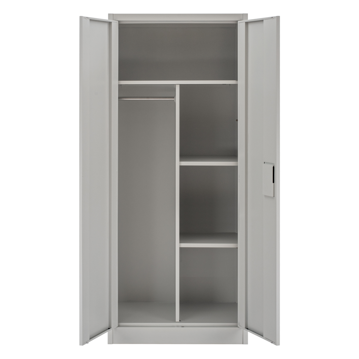 Η δίφυλλη ντουλάπα διαθέτει κλειδαριά ασφαλείας και είναι κατασκευασμένη εξολοκλήρου από μέταλλο με ηλεκτροστατική βαφή, που προστατεύει από φθορές, υγρασία και σκουριά.