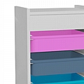 - Διαθέτει συρτάρια σε χρωματισμούς ροζ, μπλε σκούρο, μπλε και λευκό, τα οποία μπορείτε να τοποθετήσετε με όποια σειρά επιθυμείτε.