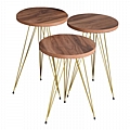 Βοηθητικά τραπέζια Wakmi pakoworld σετ 3τεμ φυσικό-πόδι χρυσό μέταλλο