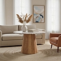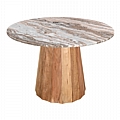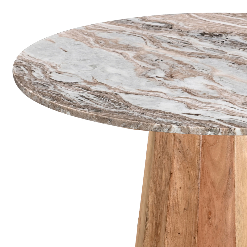 Τραπέζι Ezerdian pakoworld μασίφ ξύλο ακακίας σε φυσική απόχρωση με επιφάνεια μαρμάρου Φ150x76εκ