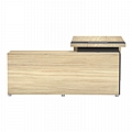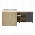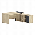 - Βοηθητικό γραφείο: Το γραφείο στη δεξιά πλευρά στηρίζεται σε ερμάριο που διαθέτει πολλαπλούς αποθηκευτικούς χώρους: Συρτάρι με κλειδαριά, ντουλάπι και ράφια. Κατασκευασμένα από μοριοσανίδα υψηλής ποιότητας με επένδυση μελαμίνης.