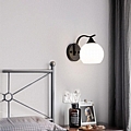 Διαθέτει μια σφαιρική, λευκή γυάλινη απόχρωση που διαχέει ομοιόμορφα ένα ζεστό και ευχάριστο φως, δημιουργώντας μια ατμόσφαιρα χαλάρωσης και άνεσης. Ο κομψός, καμπυλωτός μαύρος μεταλλικός βραχίονας προσθέτει μια πινελιά σύγχρονου στυλ και διακριτικής κομψότητας στον χώρο σας.
