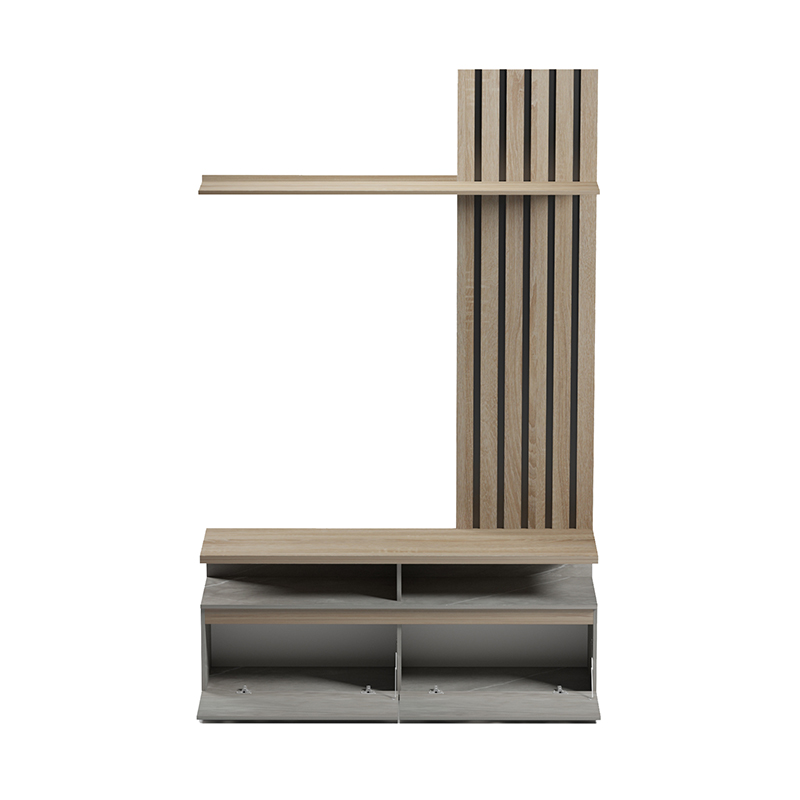 Διαθέτει ευρύχωρη επιφάνεια για την τηλεόρασή σας, ενώ τα ράφια προσφέρουν ιδανικό χώρο για διακοσμητικά, βιβλία ή συσκευές. Τα πρακτικά συρτάρια στο κάτω μέρος παρέχουν κρυφό αποθηκευτικό χώρο για να διατηρείτε τον χώρο σας τακτοποιημένο.