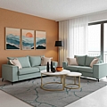 - Χρώμα καναπέ και μαξιλαριών πλάτης: Μέντα - Φέρει δύο διακοσμητικά μαξιλαράκια σε χρώμα κρεμ στον διθέσιο και δύο στον τριθέσιο καναπέ.