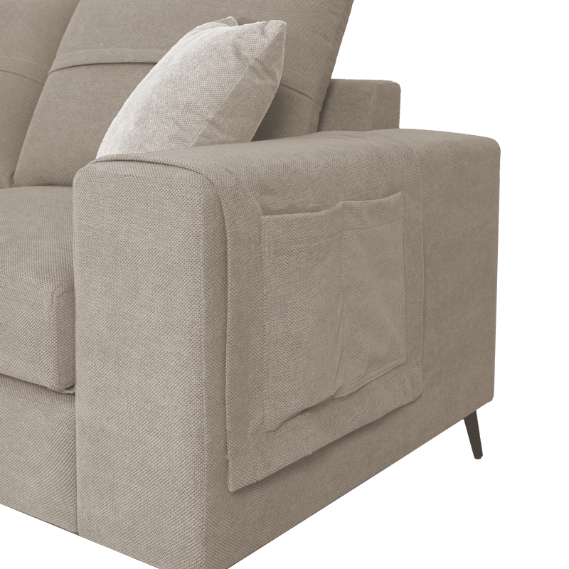 - Χρώμα καναπέ και μαξιλαριών πλάτης: Γκρι-μπεζ - Φέρει δύο διακοσμητικά μαξιλαράκια σε ανοιχτό γκρι χρώμα.
