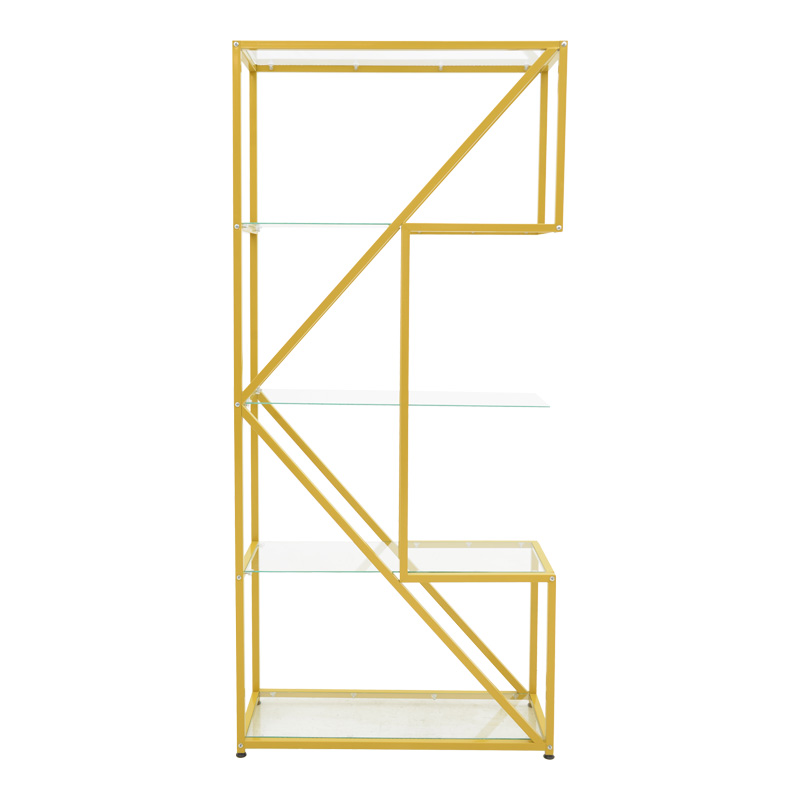 Αναβαθμίστε τον χώρο σας με αυτήν την εντυπωσιακή μοντέρνα ραφιέρα Aylan, η οποία συνδυάζει κομψότητα, λειτουργικότητα και μοναδικό design. Ο γεωμετρικός μεταλλικός σκελετός, σε κομψό χρυσό φινίρισμα, δημιουργεί μια δυναμική και σύγχρονη αισθητική, ενώ οι διάφανες γυάλινες επιφάνειες προσδίδουν αίσθηση ελαφρότητας και πολυτέλειας.
