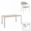 Τραπεζαρία Nares-Pino A σετ 5τεμ pakoworld λευκό αλουμίνιο και plywood σε φυσική απόχρωση 140x80x72.5εκ