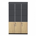 Ντουλάπα γραφείου με γυάλινες πόρτες Lotus pakoworld χρώμα φυσικό - ανθρακί 120x40x200εκ