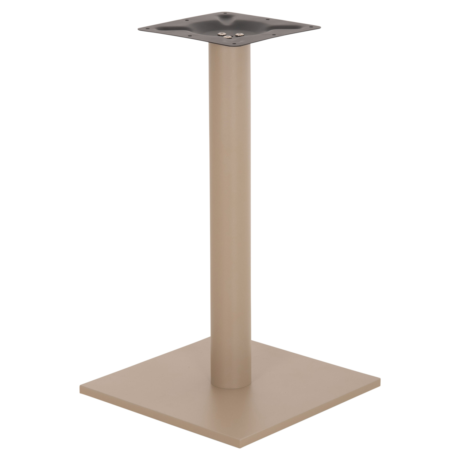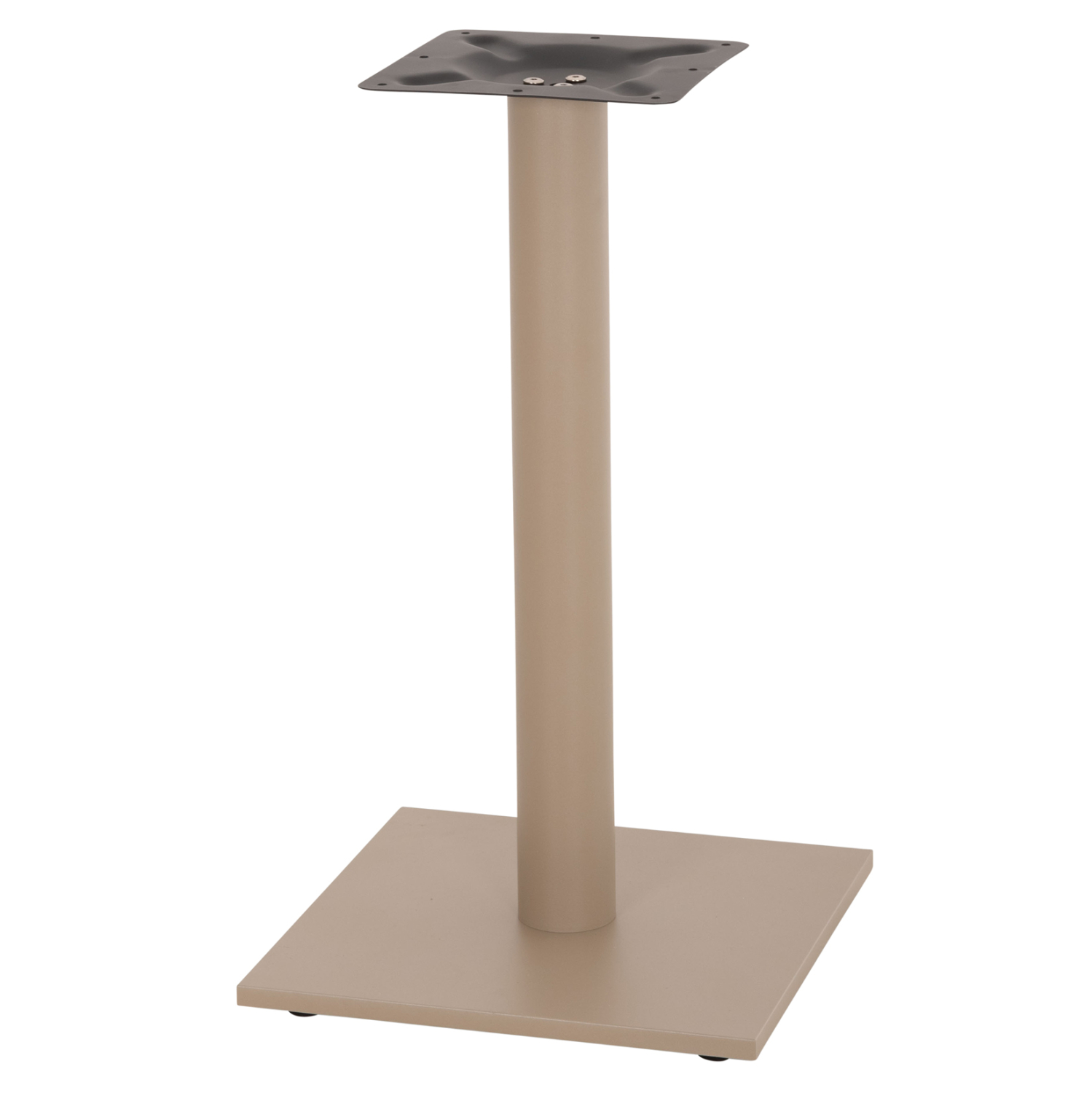 Η FB9421.25 είναι βάση για τραπέζι σε ΚΑΠΟΥΤΣΙΝΟ ΜΑΤ χρώμα. Διαθέτει μεταλλική κολώνα η οποία στηρίζεται σε μια βαριά τετράγωνη μεταλλική βάση με τσιμέντο για χαμηλό κέντρο βάρους. Το καπάκι που θα διαλέξετε στηρίζεται σε μια μεταλλική τετράγωνη επιφάνεια, με αποτέλεσμα να μπορεί να δεχθεί τόσο στρογγυλά καπάκια, όσο και τετράγωνα. Επίσης, στο κάτω μέρος της διαθέτει ρυθμιστές ύψους (ρεγουλατόρους). Ιδανική πρόταση για συνδυασμό με επιφάνειες σχεδόν κάθε είδους, όπως βερσαλίτες, HPL, MDF, κτλ.