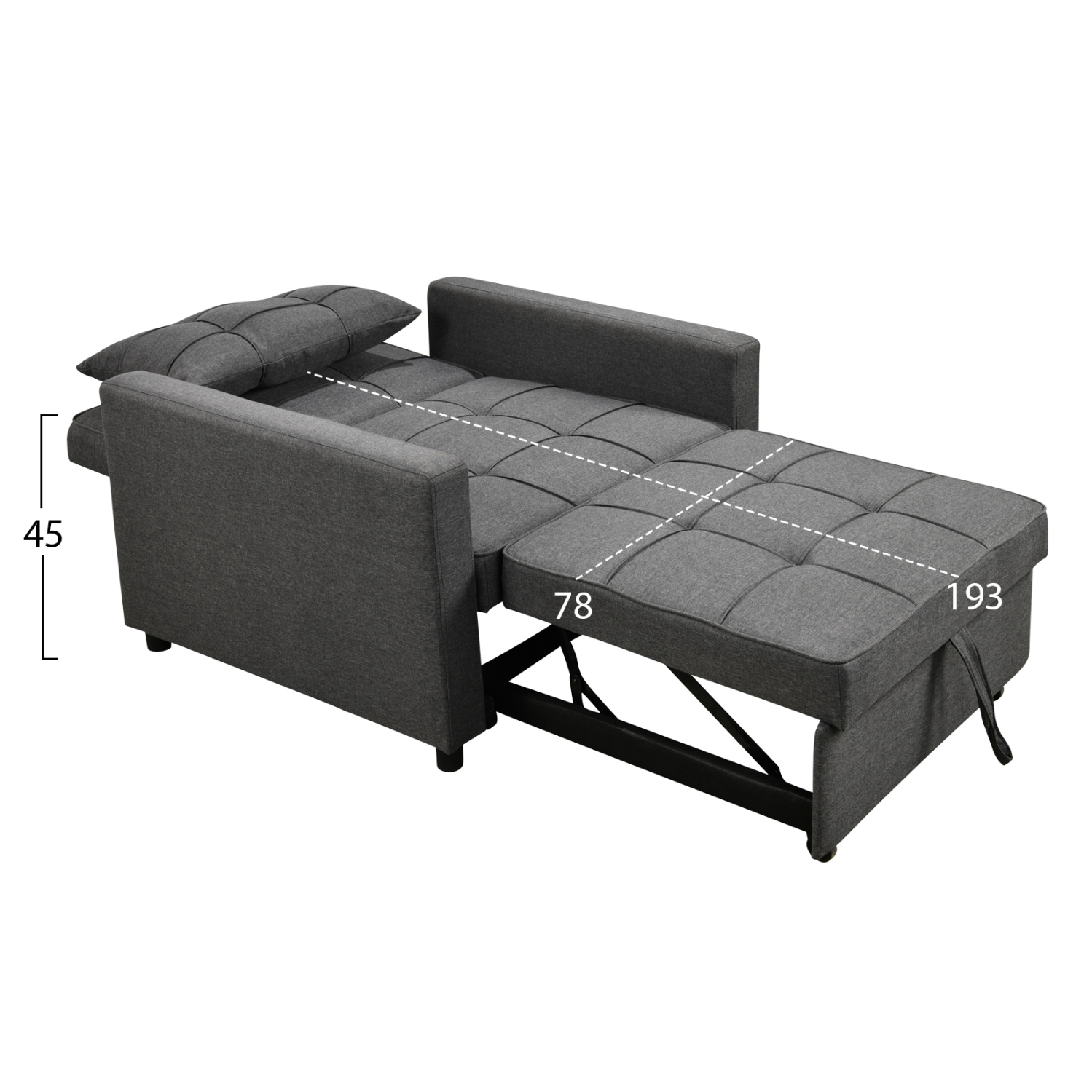 Λειτουργική πολυθρόνα-κρεβάτι με σύγχρονο σχεδιασμό, ιδανική για μικρούς χώρους και για χρήση ως καθημερινό κάθισμα ή έξτρα κρεβάτι φιλοξενίας.