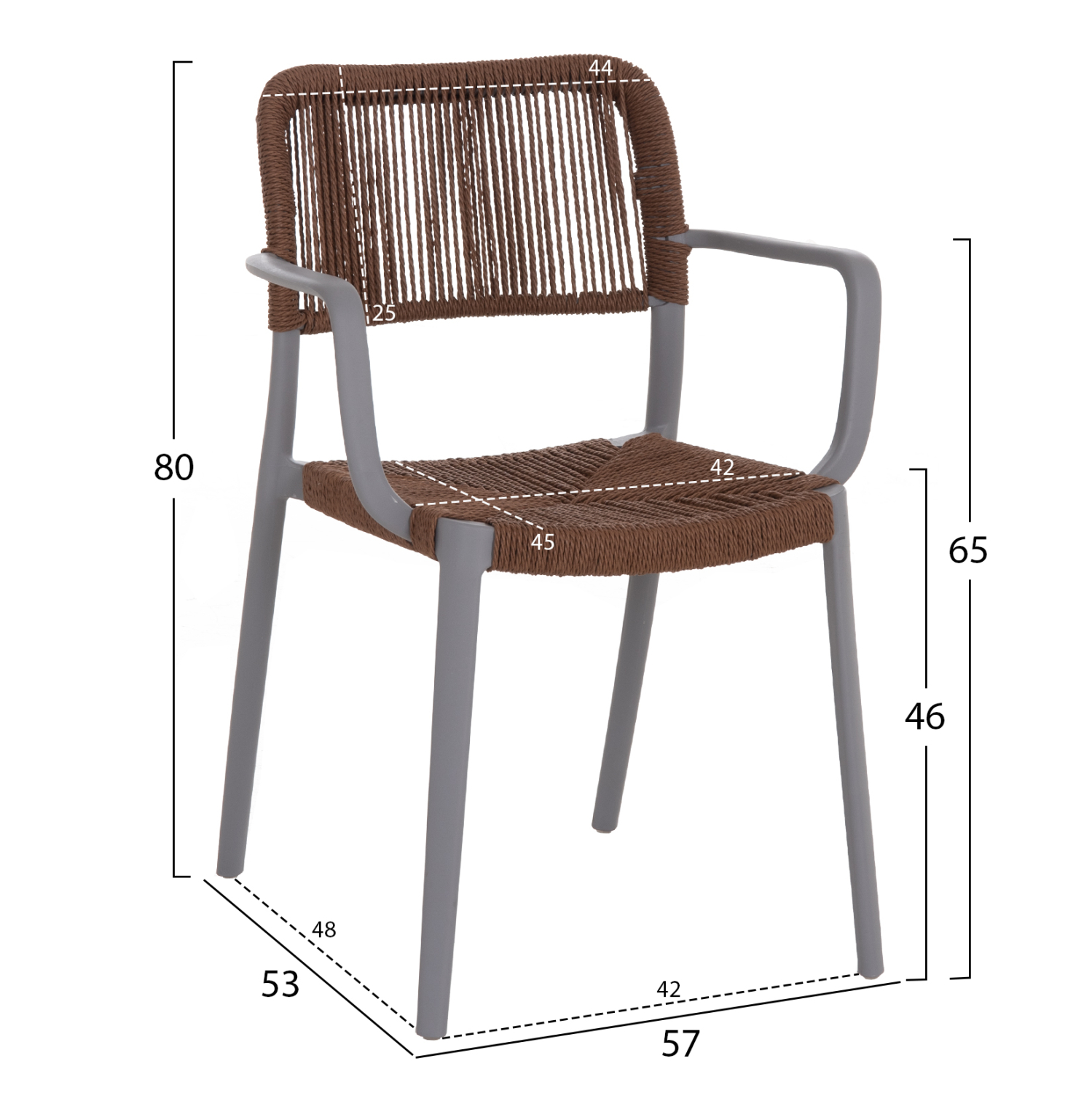•Κάθισμα και πλάτη από συνθετικό σχοινί σε καφέ απόχρωση.