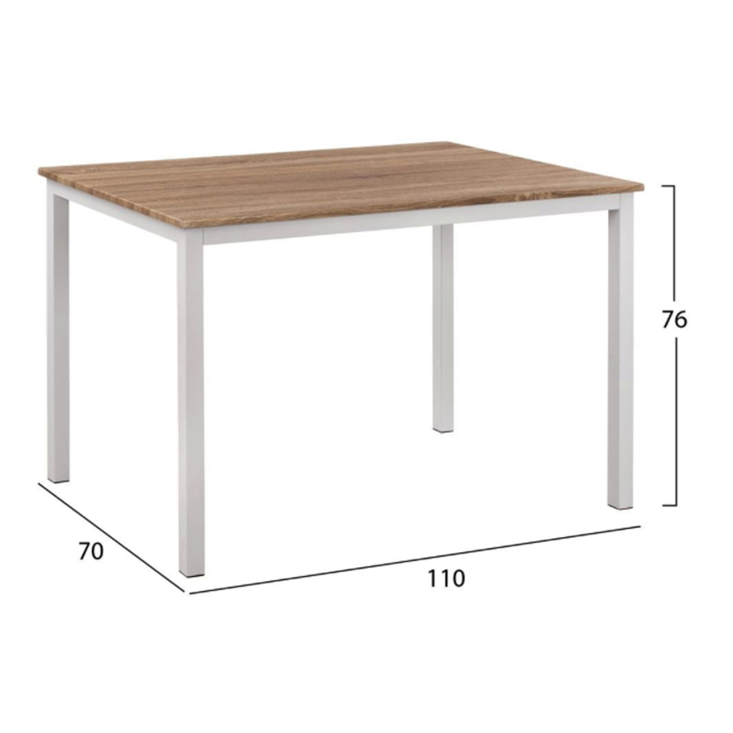 - ένα ελκυστικό μοντέρνο τραπέζι με μεταλλική βάση λευκής απόχρωσης και sonama επιφάνεια από mdf.
