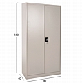 Η FB95959.11 είναι μια πρακτικότατη μεταλλική ντουλάπα που έχει φτιαχτεί με γνώμονα την χωρητικότητα και την ανθεκτικότητα. Είναι δίφυλλη με τις δύο πόρτες να κλείνουν ακριβώς στην μέση της κατασκευής, ενώ το εσωτερικό είναι ένας ενιαίος χώρος χωρίς κάθετα χωρίσματα. Διαθέτει 4 ράφια που δημιουργούν 5 αποθηκευτικούς χώρους. Οι πόρτες διαθέτουν κλειδαριά που κλειδώνει με κλειδί, ενώ το χρώμα της ντουλάπας είναι πολύ ανοιχτό γκρι.
