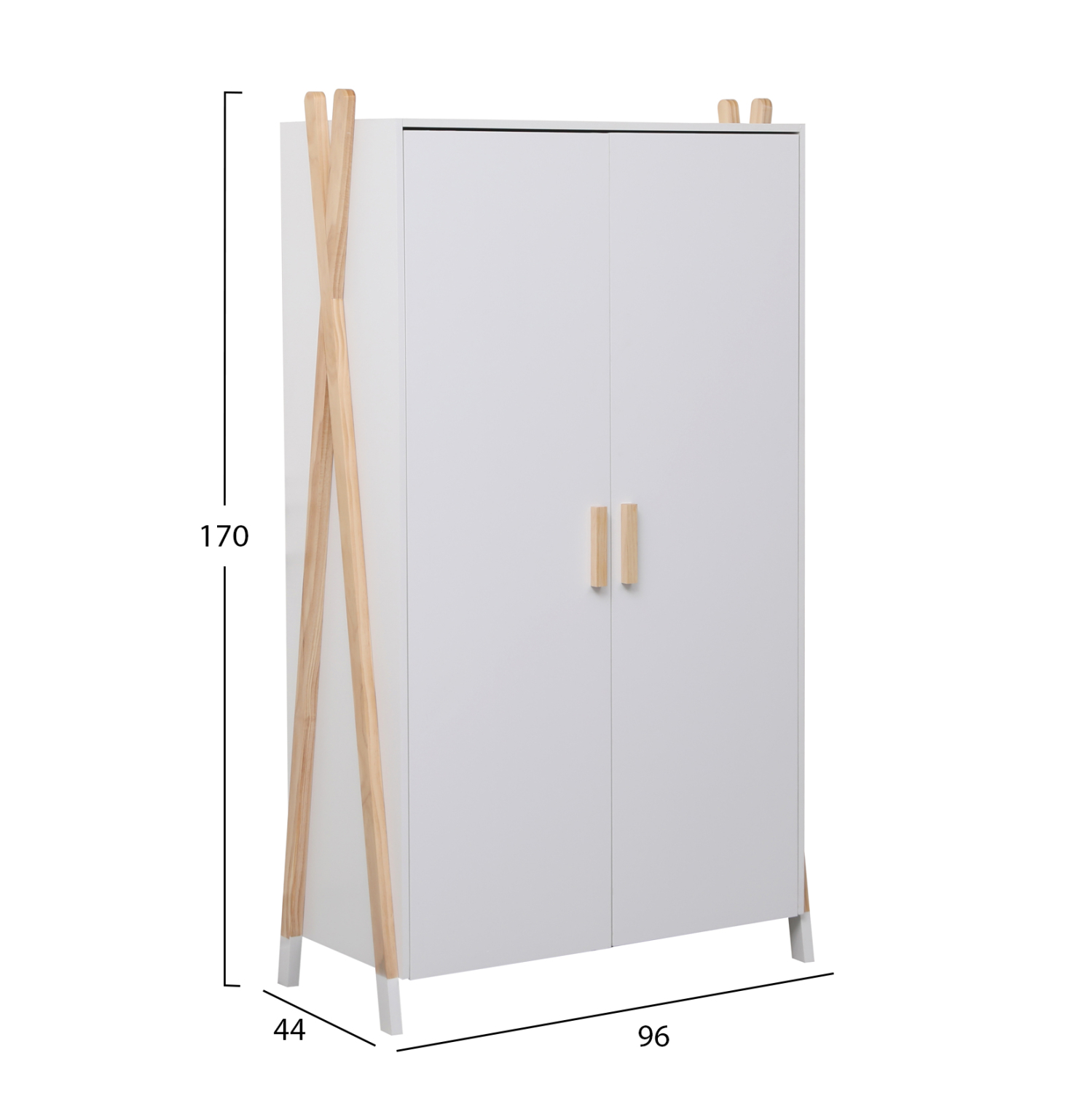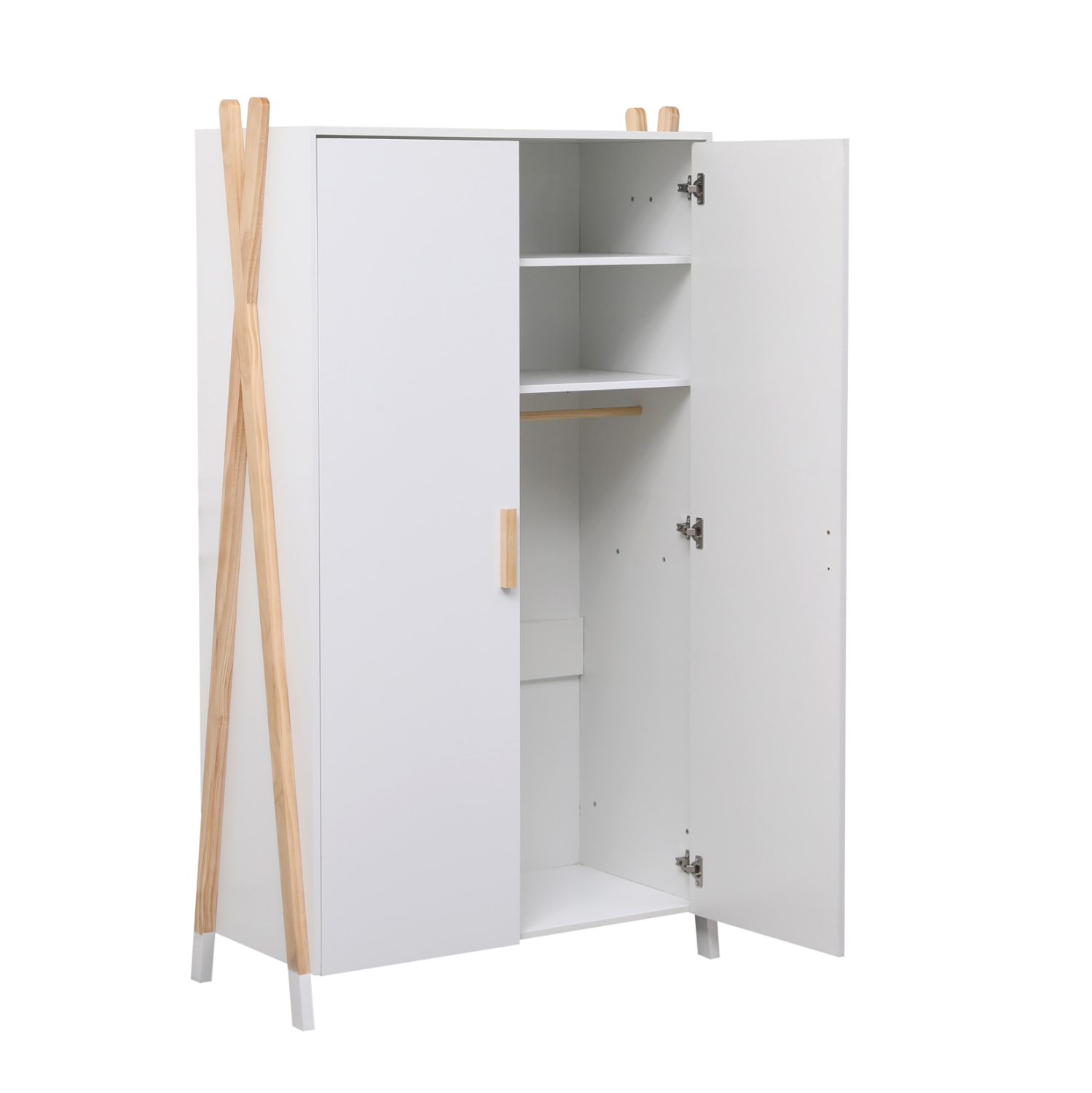 Σας παρουσιάζουμε την καινούργια παιδική (και όχι μόνο) ντουλάπα FB92494.03 σε ΛΕΥΚΟ χρώμα. Είναι βολική σε διαστάσεις και διαθέτει 2 ράφια στο επάνω μέρος και μία μπάρα κρέμασης ρούχων από κάτω. Στηρίζεται σε δύο ξύλινα χιαστί πόδια σε ΦΥΣΙΚΟ χρώμα ξύλου στις δύο πλευρές. Είναι βαμμένο με αβλαβές βερνίκι με βάση το νερό και μη τοξικό, ιδανικό για παιδιά.
