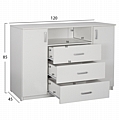 Η σύνθεση κρεβατοκάμαρας FB911758.03 αποτελείται από ένα διπλό κρεβάτι, δύο κομοδίνα με συρταράκι κι ένα ράφι, μια συρταριέρα/μπουφέ με 3 συρτάρια, 2 ντουλάπια, κι ένα ανοιχτό ράφι, και τον σομιέ για το κρεβάτι με ανθεκτικές ξύλινες ανατομικές τάβλες. Όλη η σύνθεση είναι της ίδιας σειράς σε χρώμα ΛΕΥΚΟ.