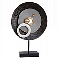 Μεταλλικό επιτραπέζιο διακοσμητικό σε μαύρη και γκρι απόχρωση με λευκές και χρυσές πινελιές και βάση σε μαύρο χρώμα.