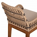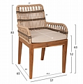 Η πολυθρόνα FB99760.02 είναι ιδανική τόσο για το σπίτι, όσο και για επαγγελματική χρήση. Ο σκελετός της όπως και το κάθισμα, είναι από ποιοτικό ξύλο, ενώ η πλάτη και τα πολύ χαμηλά μπράτσα είναι κατασκευασμένα από σχοινί άριστης ποιότητας με ΑΝΘΡΑΚΙ λεπτομέρειες. Το ξύλο έχει το φυσικό του χρώμα που μπορεί άνετα να συνδυαστεί με διάφορα διακοσμητικά μοτίβα. Το μαξιλάρι του καθίσματος είναι σε μπεζ χρώμα και διαθέτει φερμουάρ για να αφαιρείται το κάλυμμα.