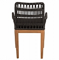 Η πολυθρόνα FB99760.03 είναι ιδανική τόσο για το σπίτι, όσο και για επαγγελματική χρήση. Ο σκελετός της όπως και το κάθισμα, είναι από ποιοτικό ξύλο, ενώ η πλάτη και τα πολύ χαμηλά μπράτσα είναι κατασκευασμένα από μαύρο σχοινί άριστης ποιότητας. Το ξύλο έχει μελί χρώμα που μπορεί άνετα να συνδυαστεί με διάφορα διακοσμητικά μοτίβα. Το μαξιλάρι του καθίσματος είναι σε μαύρο χρώμα και διαθέτει φερμουάρ για να αφαιρείται το κάλυμμα.