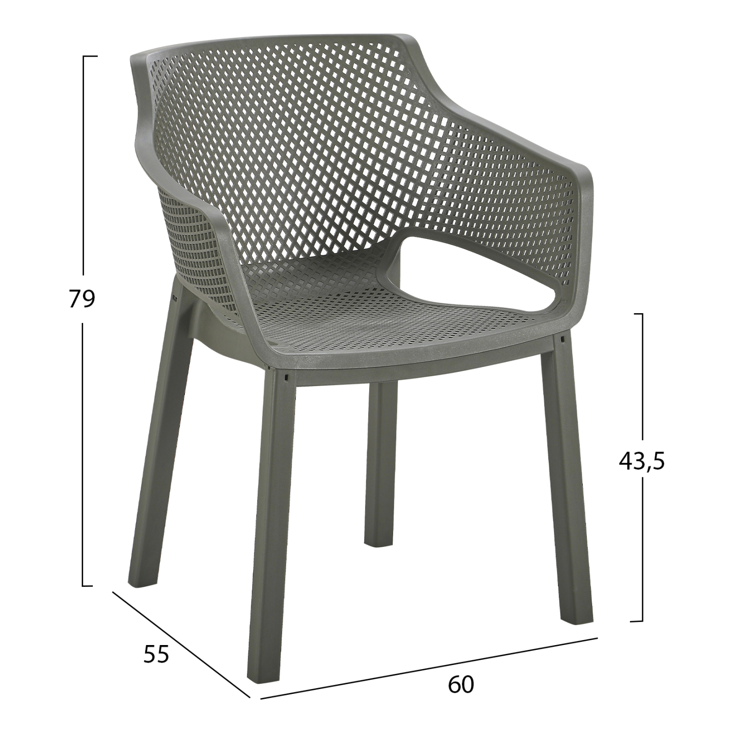 Η πολυθρόνα πολυπροπυλενίου FB96368.05 σε DARK OLIVE GREEN χρώμα αποτελεί μια κλασική επιλογή για χρήση σε εξωτερικούς χώρους, είτε επαγγελματικούς μιας και είναι ΣΤΟΙΒΑΖΟΜΕΝΗ (χώροι δεξιώσεων, εταιρείες catering, κλπ.) είτε για το σπίτι. Αποτελείται από ένα χυτό «τρυπητό» σύνολο καθίσματος-πλάτης-μπράτσων για καλύτερο αερισμό.