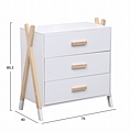 Παιδική συρταριέρα με 3 συρτάρια. Μελαμίνη σε ΛΕΥΚΟ χρώμα με σκελετό ξύλου πεύκου σε χιαστί διάταξη.