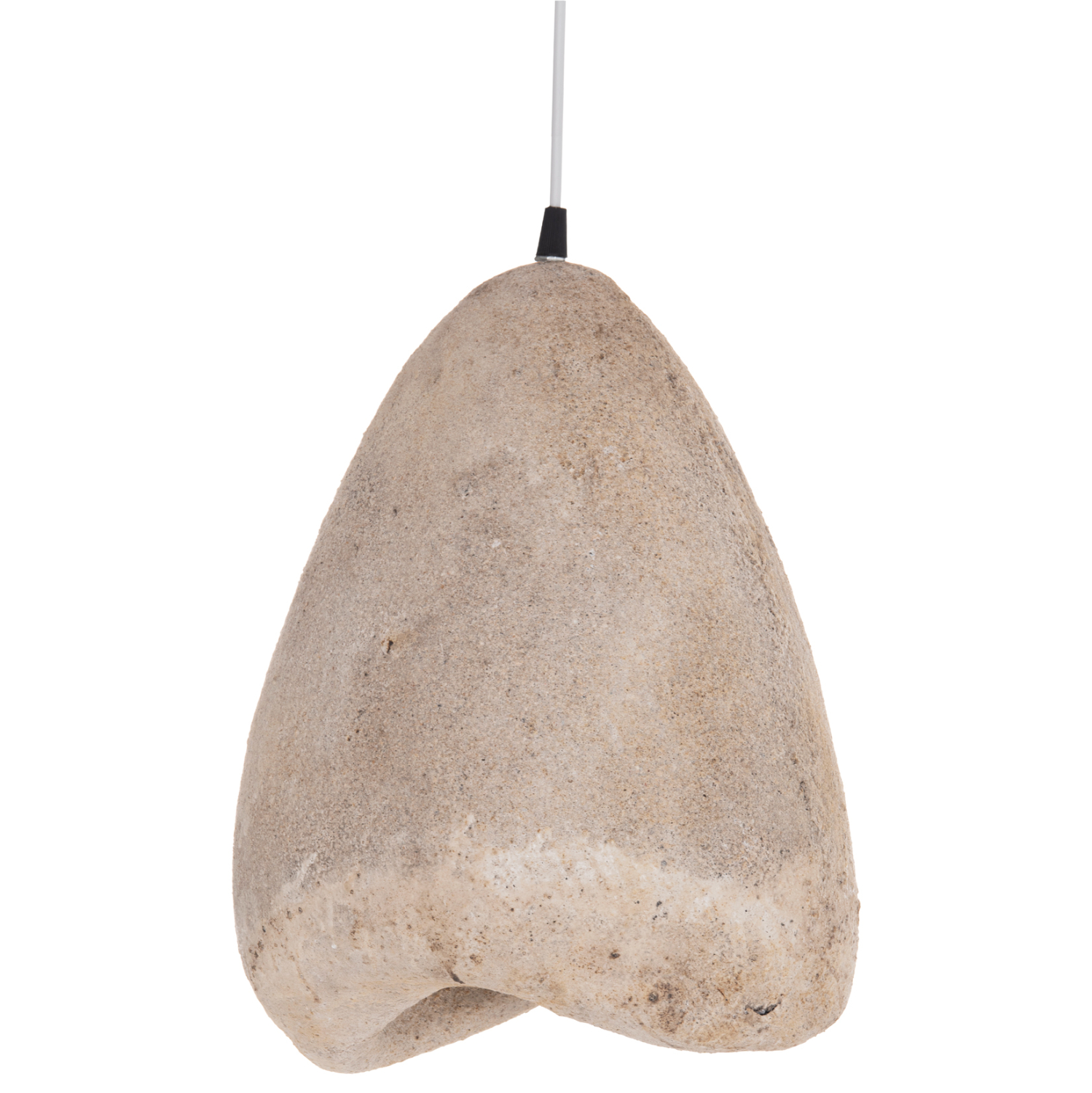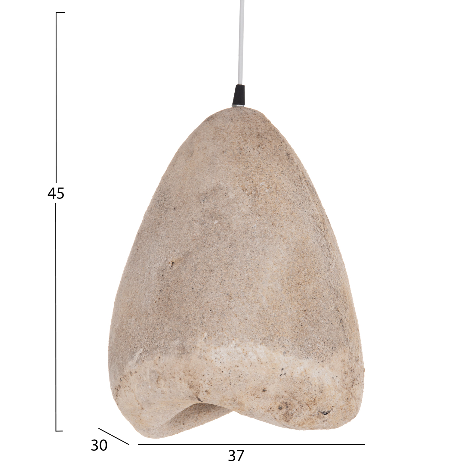 Αυτό το κρεμαστό φωτιστικό οροφής σε σχήμα πέτρας είναι κατασκευασμένο από RESIN (ΡΗΤΙΝΗ) υλικό σε σκούρο μπεζ χρώμα και διαχέει τον φωτισμό απαλά στο χώρο, δημιουργώντας μια όμορφη ατμόσφαιρα. Αποτελεί κυρίως διακοσμητικό στοιχείο στον χώρο και απαιτεί ανάλογο περιβάλλον.