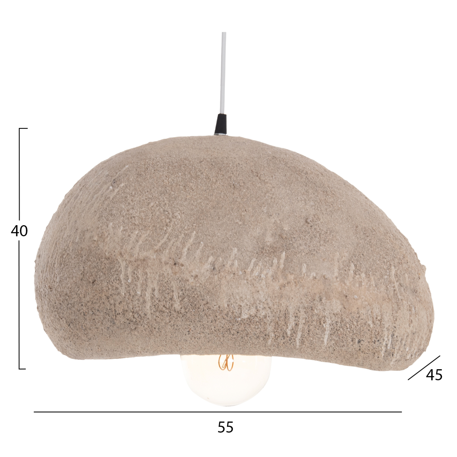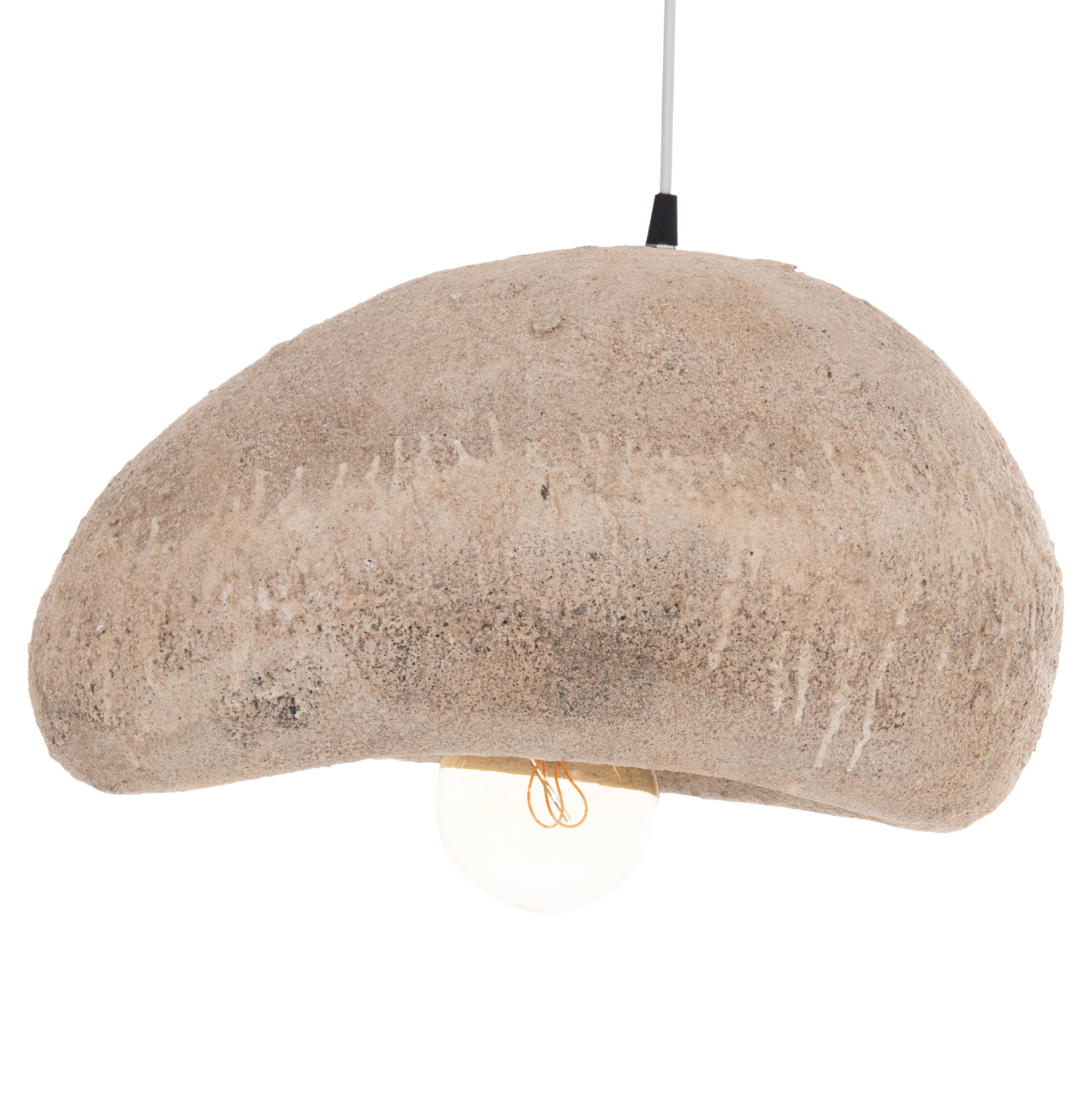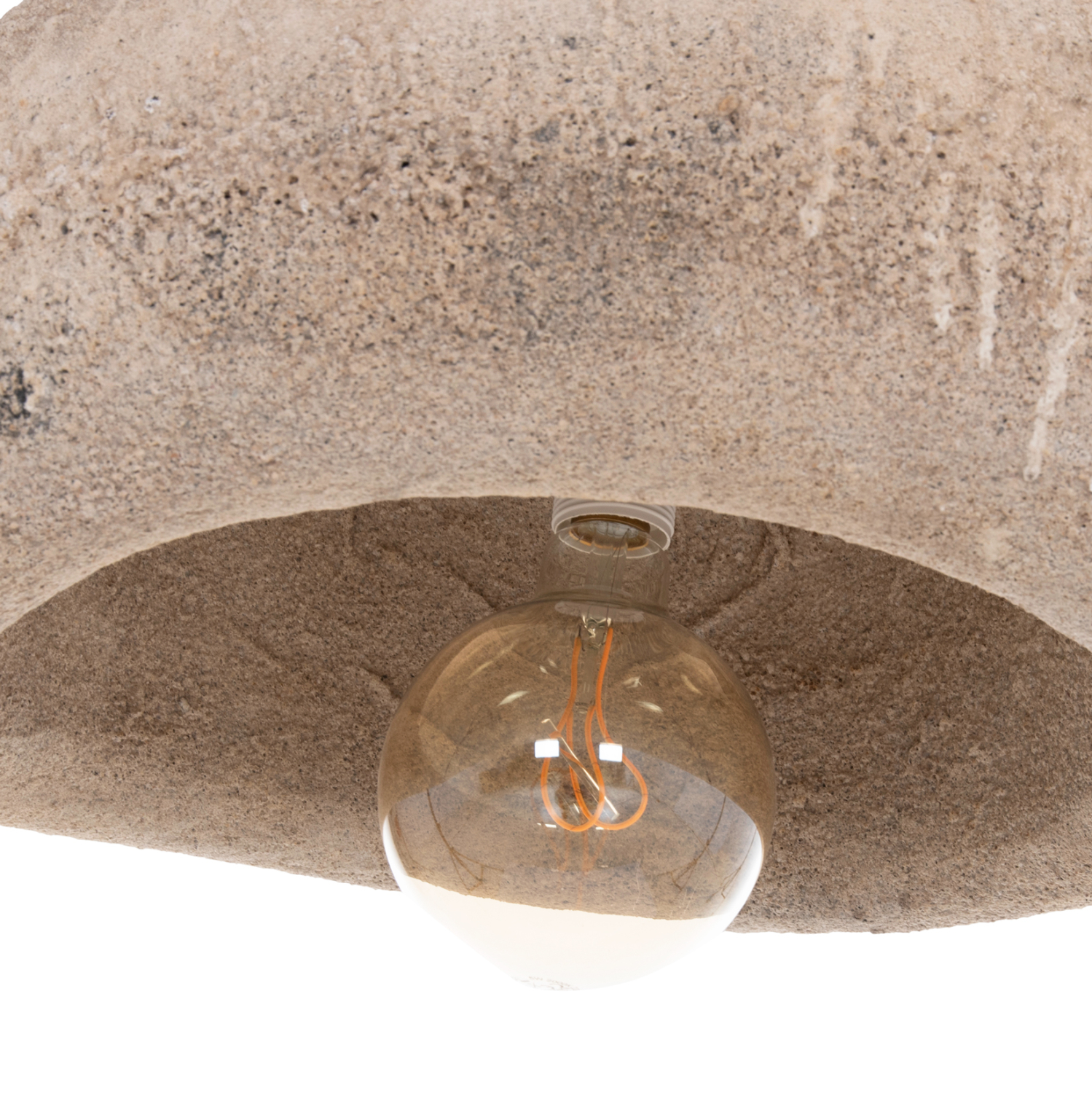 Αυτό το κρεμαστό φωτιστικό οροφής σε σχήμα πέτρας είναι κατασκευασμένο από RESIN (ΡΗΤΙΝΗ) υλικό σε σκούρο μπεζ χρώμα και διαχέει τον φωτισμό απαλά στο χώρο, δημιουργώντας μια όμορφη ατμόσφαιρα. Αποτελεί κυρίως διακοσμητικό στοιχείο στον χώρο και απαιτεί ανάλογο περιβάλλον.