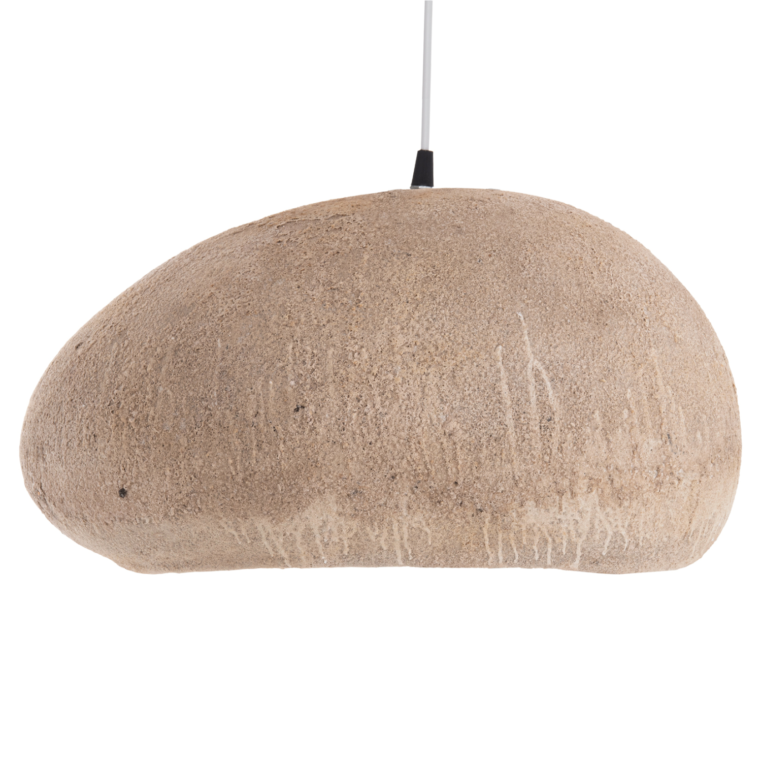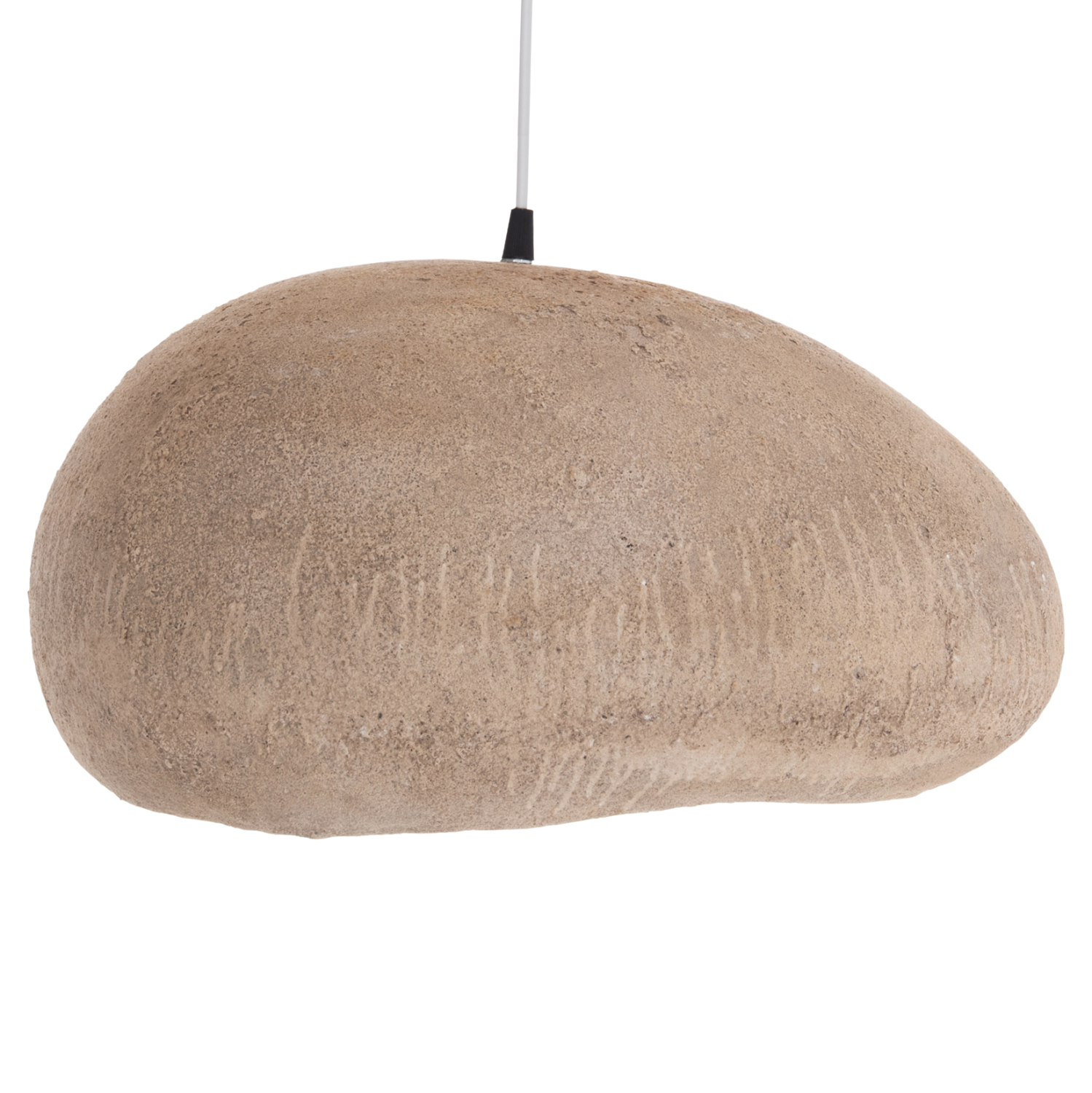 Αυτό το κρεμαστό φωτιστικό οροφής σε σχήμα πέτρας είναι κατασκευασμένο από RESIN(ΡΗΤΙΝΗ) υλικό σε σκούρο μπεζ χρώμα και διαχέει τον φωτισμό απαλά στο χώρο, δημιουργώντας μια όμορφη ατμόσφαιρα. Αποτελεί κυρίως διακοσμητικό στοιχείο στον χώρο και απαιτεί ανάλογο περιβάλλον.