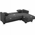 Αναστρέψιμος γωνιακός καναπές-κρεβάτι με αποθηκευτικό χώρο, επενδυμένος με γκρι ύφασμα.
