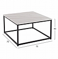 Τραπέζι σαλονιού τετράγωνο. Μαύρη μεταλλική βάση-Επιφάνεια μελαμίνης σε χρώμα λευκού μαρμάρου. Διαστάσεις: 75x75x43Υ εκ.