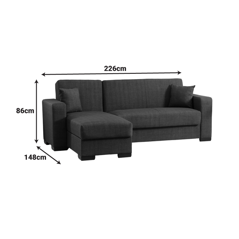 Γωνιακός καναπές-κρεβάτι αναστρέψιμος Dumma pakoworld ύφασμα ανθρακί 226x148x86εκ