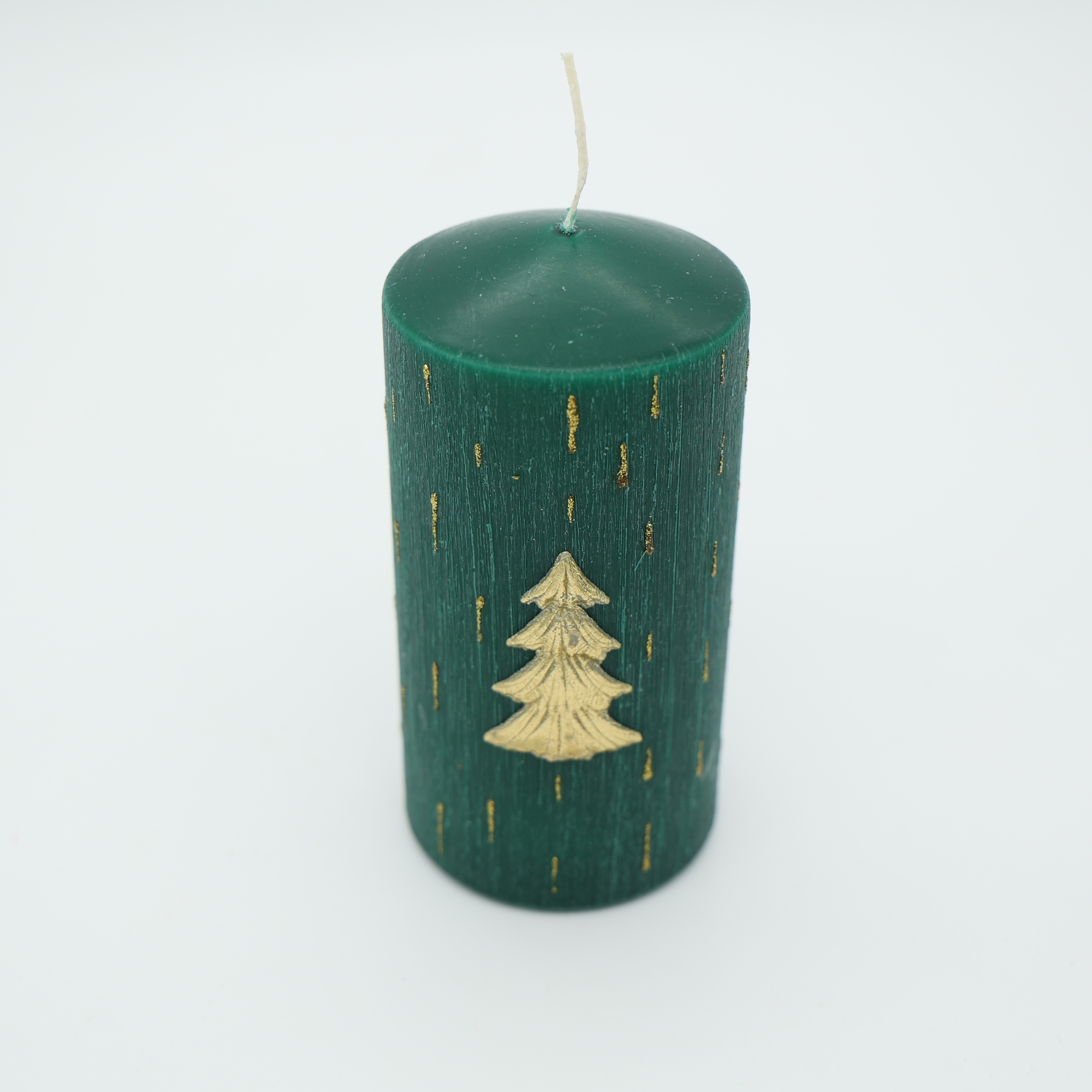 Χριστουγεννιάτικο πράσινο κερί με χρυσό δεντράκι