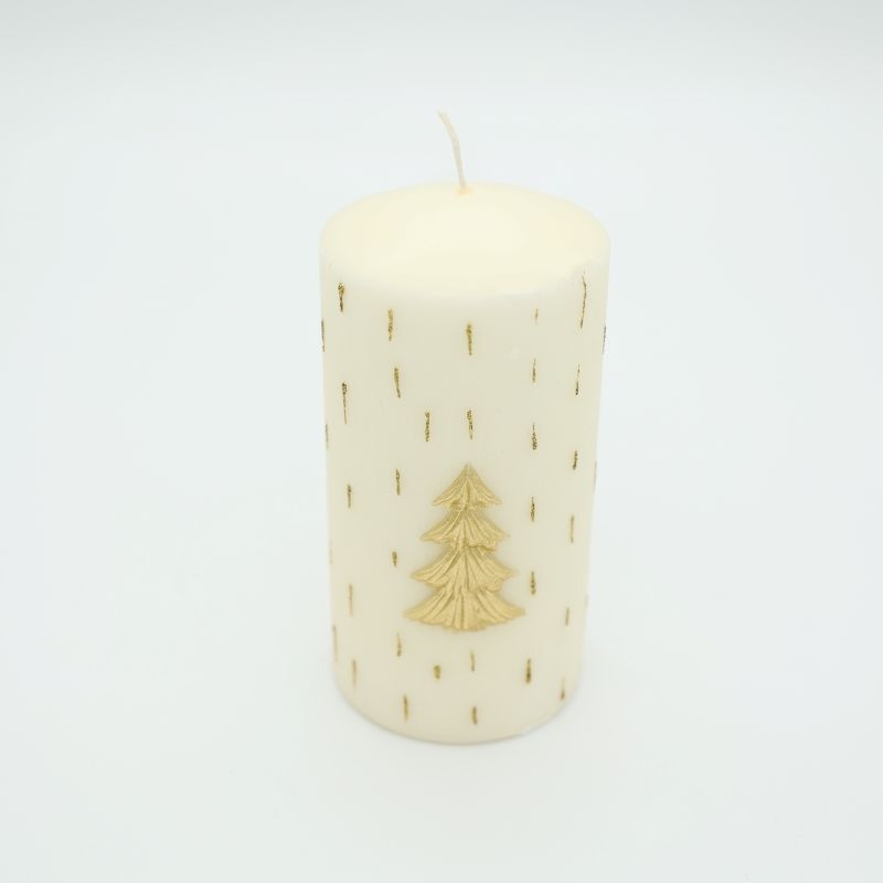 Χριστουγεννιάτικο λευκό κερί με χρυσό δεντράκι