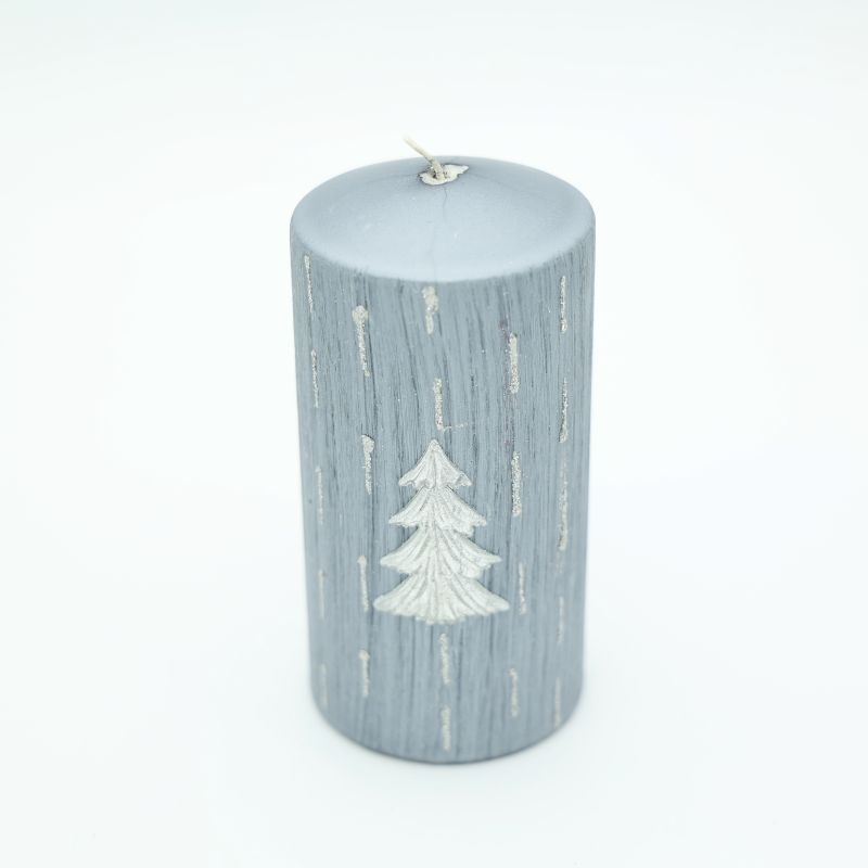 Χριστουγεννιάτικο γαλάζιο-γκρι κερί με ασημί δεντράκι