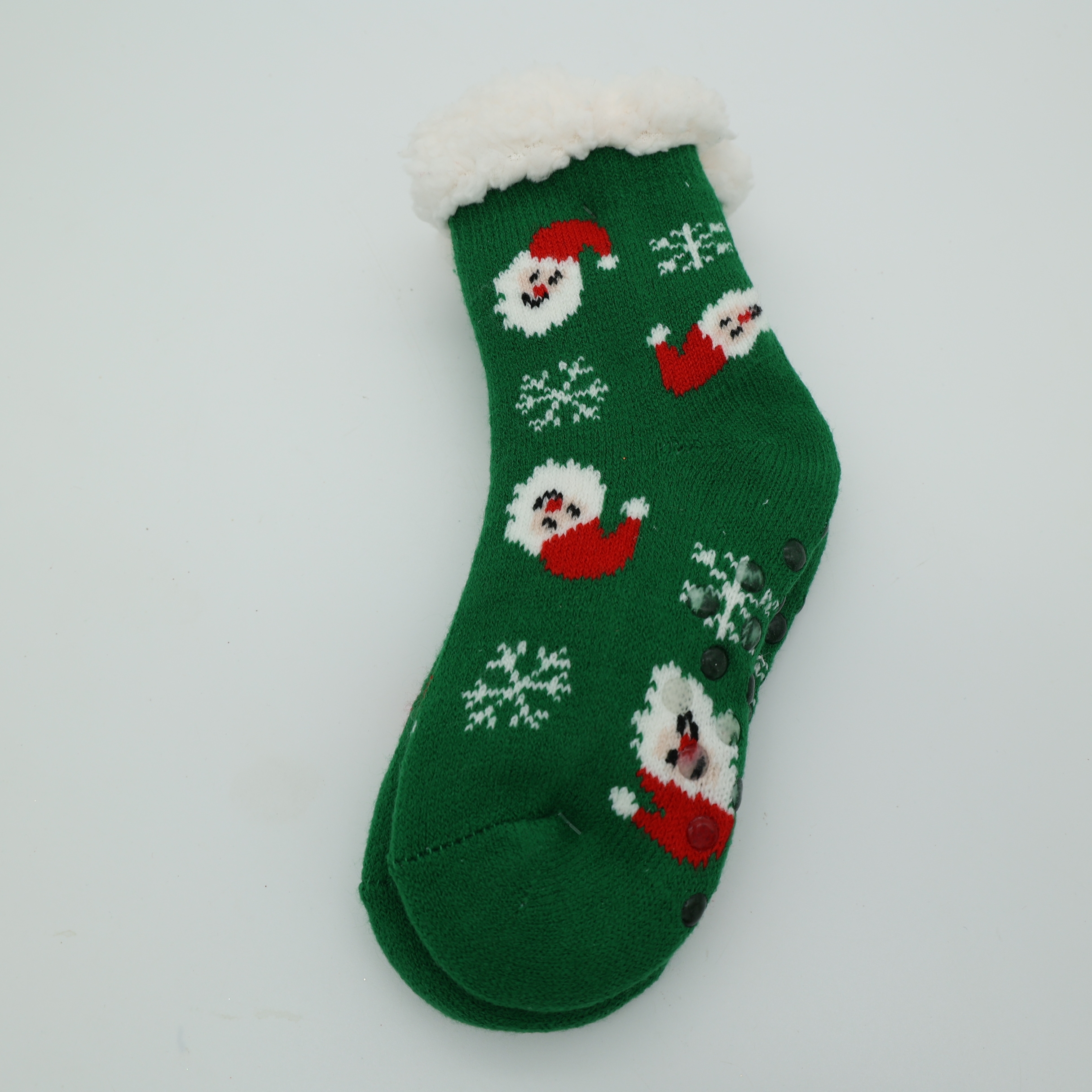Χριστουγεννιάτικες, χνουδωτές κάλτσες τύπου παντόφλας. Είναι ζεστές και μαλακές, με αντιολισθητικά σημεία στην σόλα ώστε να είναι ασφαλείς στο περπάτημα σε λείες επιφάνειες και χαρούμενα σχέδια.