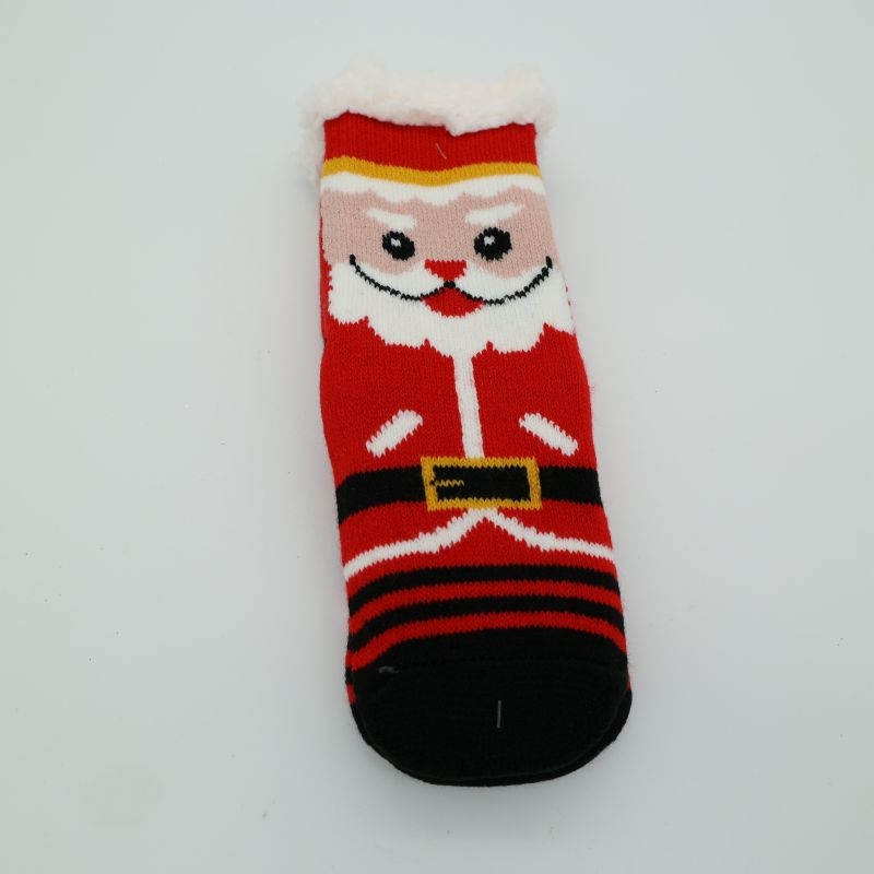 Χριστουγεννιάτικες, χνουδωτές κάλτσες με τον Αϊ-Βασίλη τύπου παντόφλας. Είναι ζεστές και μαλακές, με αντιολισθητικά σημεία στην σόλα ώστε να είναι ασφαλείς στο περπάτημα σε λείες επιφάνειες.