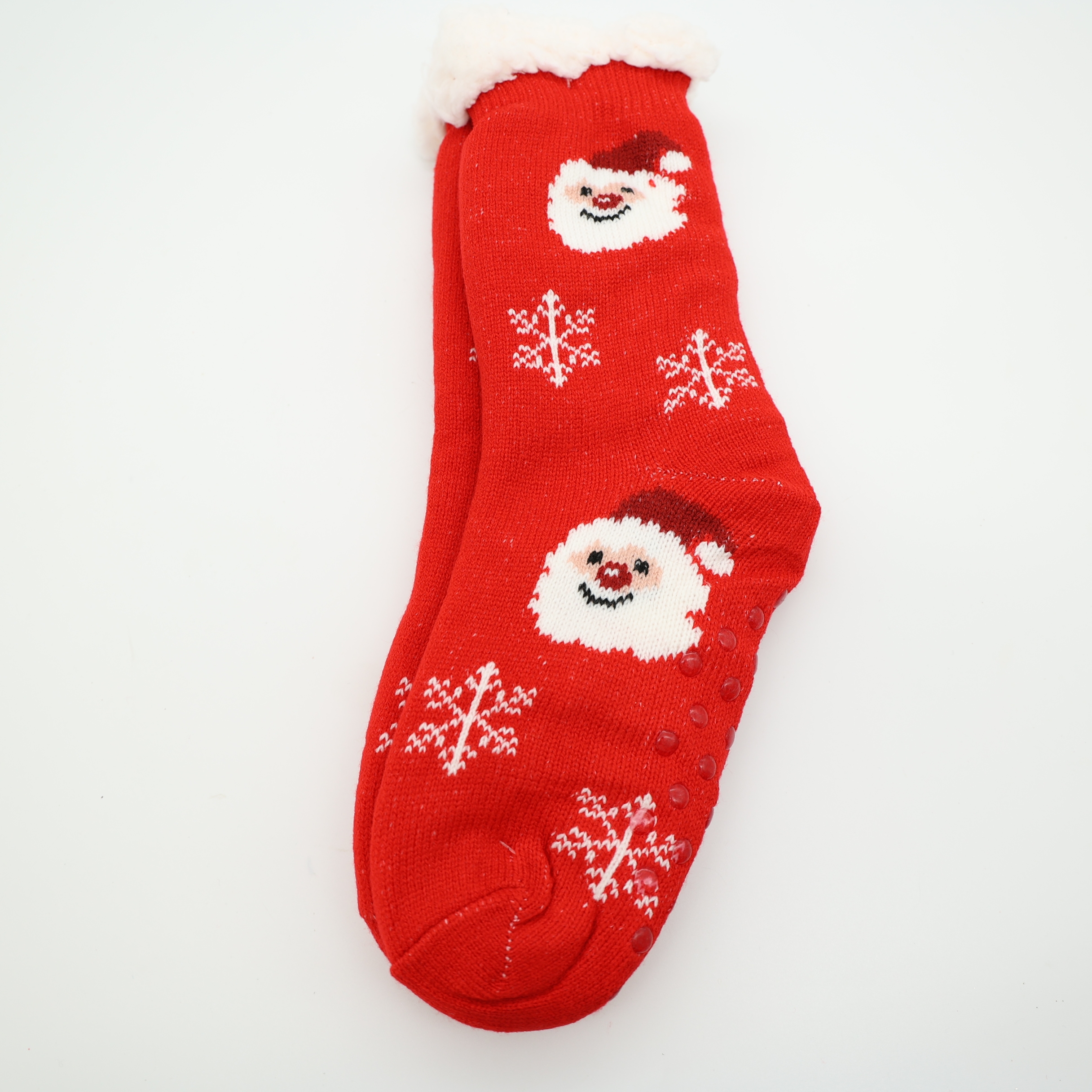 Χριστουγεννιάτικες, χνουδωτές κάλτσες τύπου παντόφλας. Είναι ζεστές και μαλακές, με αντιολισθητικά σημεία στην σόλα ώστε να είναι ασφαλείς στο περπάτημα σε λείες επιφάνειες και χαρούμενα σχέδια.
