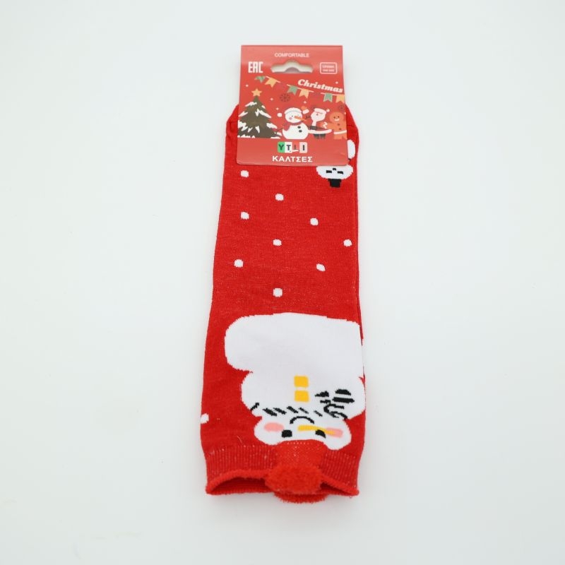 Οι κάλτσες αυτές είναι από λεπτό, ελαφρύ υλικό και προσφέρουν άνεση στην καθημερινή χρήση χωρίς να βαραίνουν το πόδι. Το κόκκινο χρώμα τους, διακοσμημένο με χιονονιφάδες και έναν χαριτωμένο χιονάνθρωπο, τους δίνει έναν έντονα γιορτινό χαρακτήρα.