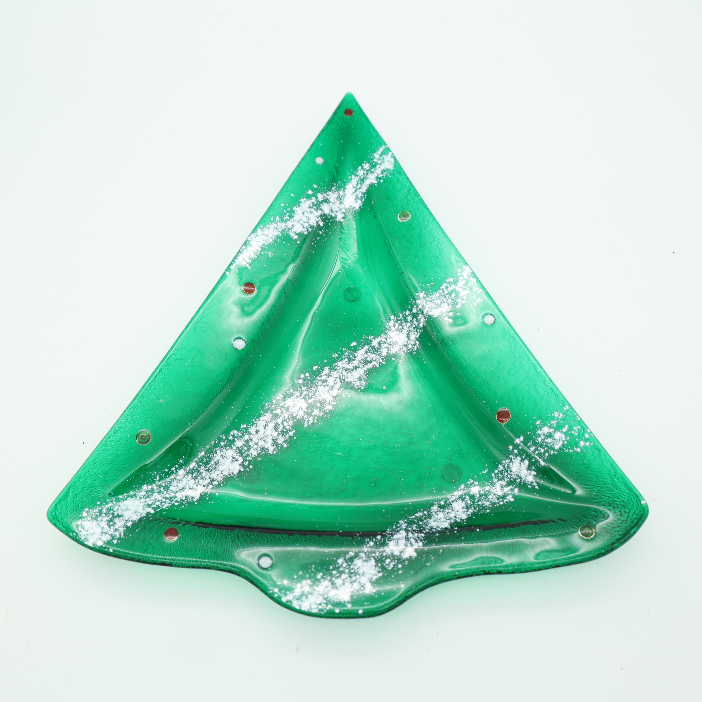 Χριστουγεννιάτικη πράσινη πιατέλα σε σχήμα δέντρου, ιδανική για να δώσει γιορτινή ατμόσφαιρα στο τραπέζι σας. Με κομψό σχεδιασμό και έντονο πράσινο χρώμα, αποτελεί ξεχωριστή επιλογή για το σερβίρισμα γλυκών, ξηρών καρπών, ορεκτικών ή χριστουγεννιάτικων λιχουδιών.
