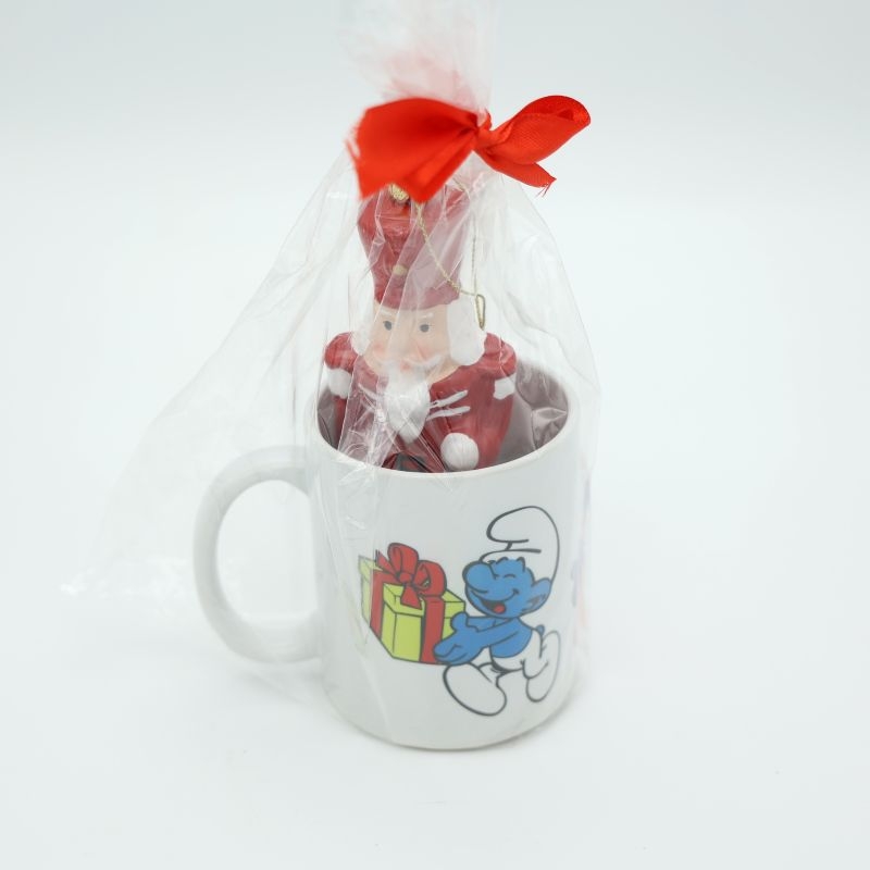 Λευκή κούπα με τα Στρουμφάκια και στολίδι καρυοθραύστη