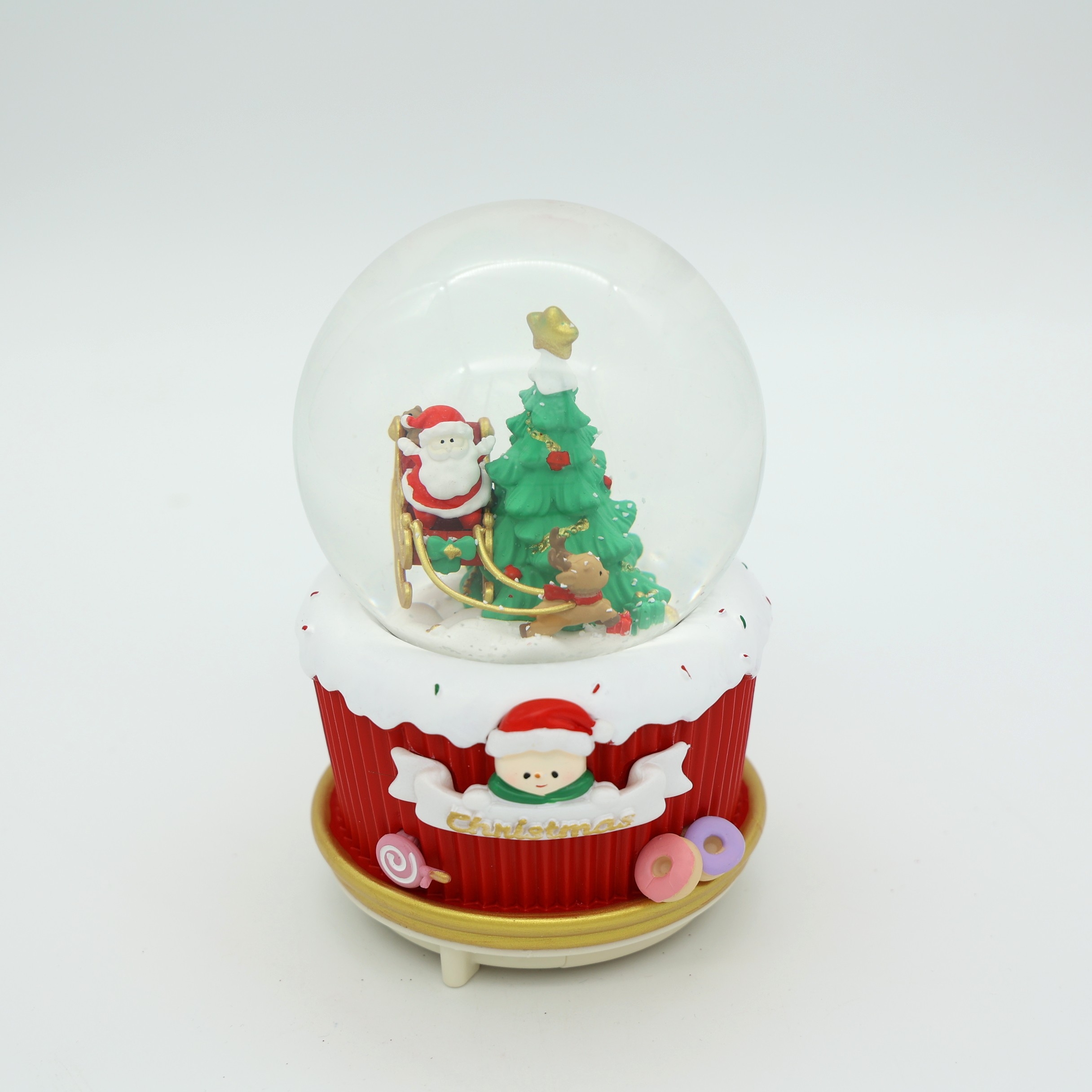 Εντυπωσιακή χριστουγεννιάτικη χιονόμπαλα με νερό στο εσωτερικό, που απεικονίζει τον Άγιο Βασίλη με το έλκηθρό του δίπλα σε στολισμένο έλατο. Ο φωτισμός δημιουργεί μια ζεστή και μαγική ατμόσφαιρα, ενώ ο ενσωματωμένος ήχος προσθέτει ακόμη περισσότερη γιορτινή διάθεση.