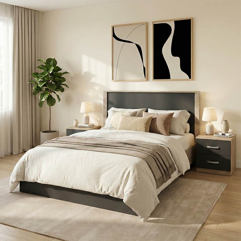 Σετ Κρεβατοκάμαρας Athos Sonoma Ανθρακί με Κρεβάτι 140x200εκ Σετ 3τεμ