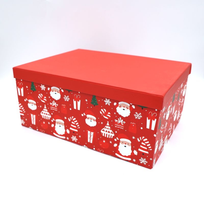 Κομψό και γιορτινό κουτί δώρου με χριστουγεννιάτικο σχέδιο, ιδανικό για να εντυπωσιάσετε από την πρώτη στιγμή. Το έντονο κόκκινο χρώμα και τα χαρούμενα μοτίβα με Άγιο Βασίλη, δώρα και χιονονιφάδες δημιουργούν μια ζεστή, εορταστική ατμόσφαιρα.