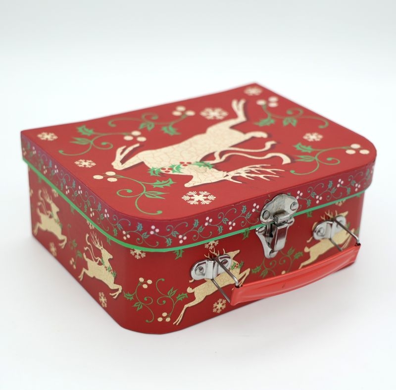 Εντυπωσιακό κουτί με κομψό χριστουγεννιάτικο σχέδιο και μοτίβα με ελάφια, εμπνευσμένα από την κλασική εορταστική αισθητική. Το βαθύ κόκκινο χρώμα, σε συνδυασμό με τις πράσινες και χρυσές λεπτομέρειες, χαρίζει μια ζεστή και παραδοσιακή νότα Χριστουγέννων.