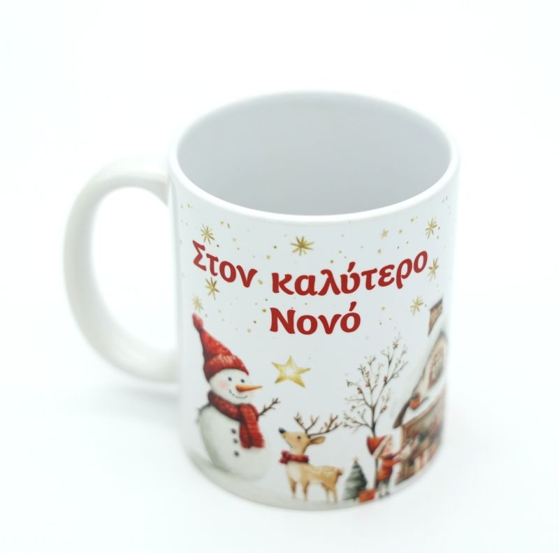 Γιορτινή κούπα με ζεστό χριστουγεννιάτικο σχέδιο και αφιέρωση «Στον καλύτερο Νονό», ιδανική για να εκφράσετε την αγάπη και την εκτίμησή σας με έναν ξεχωριστό τρόπο. Το χαρούμενο εορταστικό σκηνικό με χιονάνθρωπο, ελαφάκι και χειμωνιάτικες λεπτομέρειες δημιουργεί μια μαγική χριστουγεννιάτικη αίσθηση.