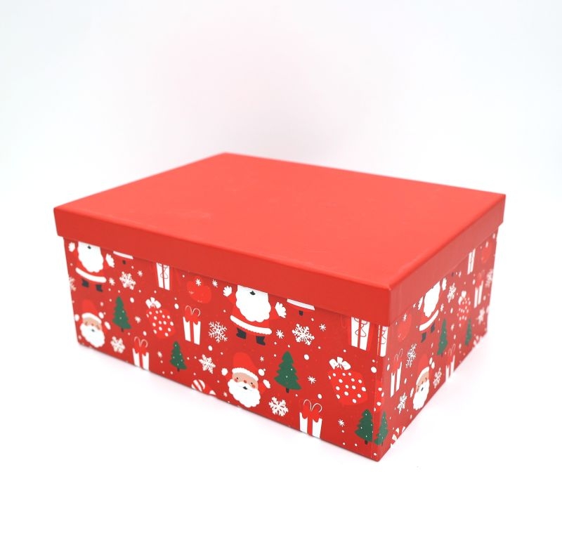 Κομψό και γιορτινό κουτί δώρου με χριστουγεννιάτικο σχέδιο, ιδανικό για να εντυπωσιάσετε από την πρώτη στιγμή. Το έντονο κόκκινο χρώμα και τα χαρούμενα μοτίβα με Άγιο Βασίλη, δώρα και χιονονιφάδες δημιουργούν μια ζεστή, εορταστική ατμόσφαιρα.