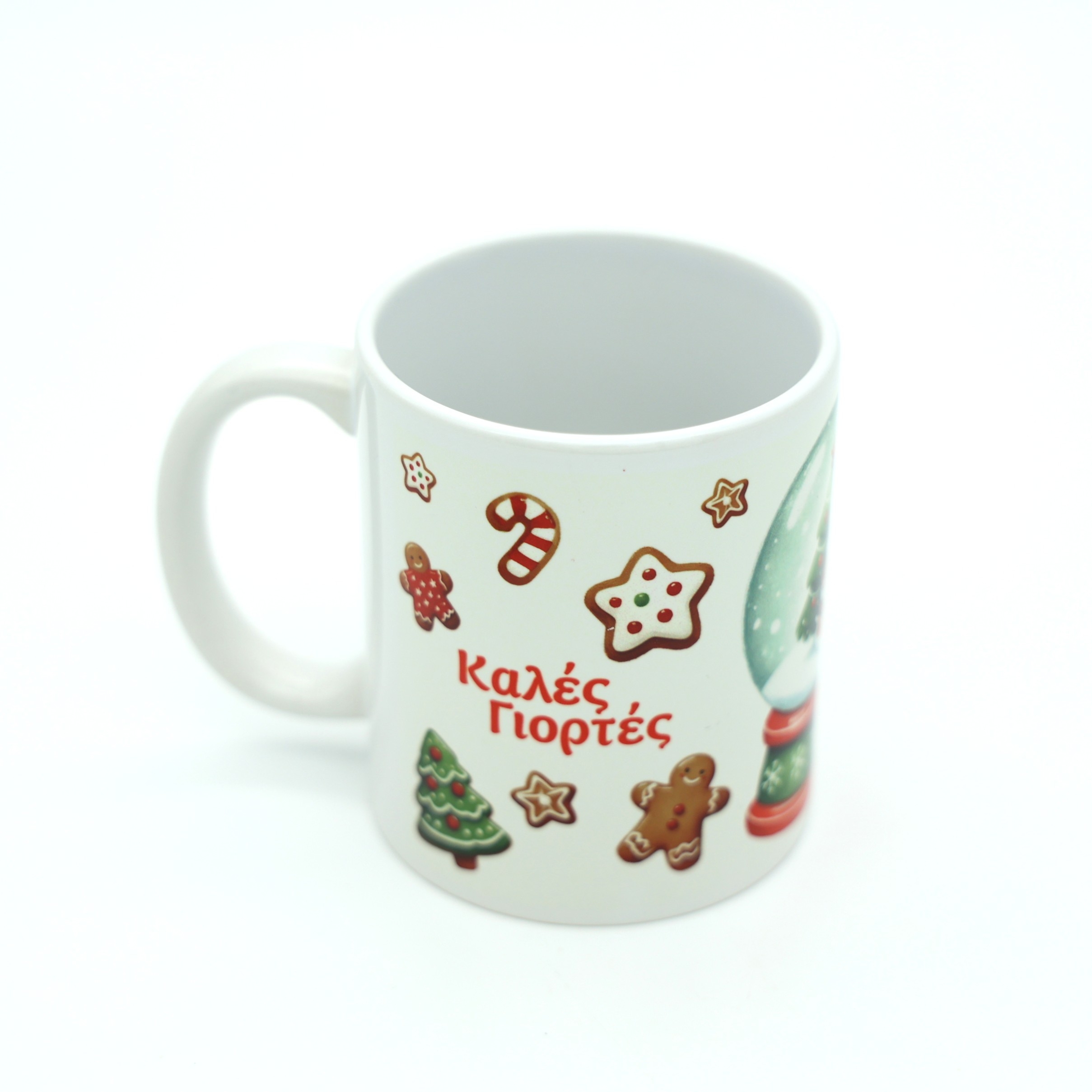Γιορτινή κεραμική κούπα με ευχή «Καλές Γιορτές», διακοσμημένη με χαριτωμένα χριστουγεννιάτικα σχέδια όπως μπισκοτάκια, ζαχαρωτά και δεντράκια. Ένα χαρούμενο και γλυκό σχέδιο που φέρνει τη μαγεία των Χριστουγέννων σε κάθε ρόφημα.