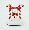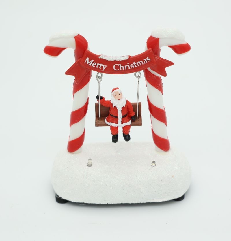 Χαριτωμένο φωτιζόμενο χριστουγεννιάτικο διακοσμητικό με τον Άγιο Βασίλη να κάθεται σε κούνια, ανάμεσα σε δύο διακοσμητικά ζαχαρωτά candy canes και επιγραφή “Merry Christmas”. Ο παιχνιδιάρικος σχεδιασμός του δημιουργεί μια ζεστή και χαρούμενη εορταστική ατμόσφαιρα.