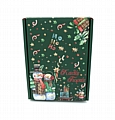 Χαρούμενο και γιορτινό χριστουγεννιάτικο κουτάκι για δώρο, με όμορφη εικονογράφηση από χιονάνθρωπους, αστέρια, κορδέλες και την επιγραφή Ho Ho Ho. Ο συνδυασμός πράσινου και κόκκινου χρώματος προσδίδει κλασικό χριστουγεννιάτικο ύφος.